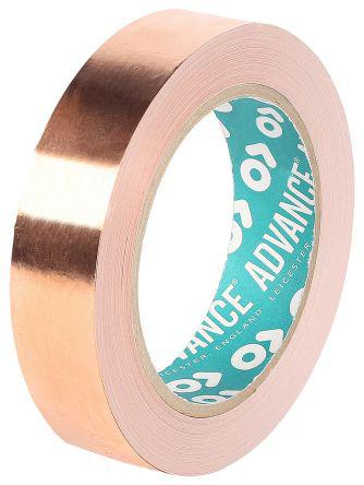 This is AT526 Conductive Copper Tape 19mm x 33m manufactured by Advance Tapes. The manufacturer part number is 212880. It has thermosetting acrylic as adhesive material . It complies with bs en 60454 - part 2 EN legislation . It has a minimum -20°c temperature resistance . It has about +155°c maximum temperature resistance . It has none material plating . It has a model number at526. The product has an added tensile strength of 40n/cm. Furthermore, the product is 19mm wide. Its accurate length is 33m. It is built with 0.06mm total thickness . Additionally, its adhesion strength is about 4.5 n/cm . It has a standard 0.035mm foil thickness . It is conductive .