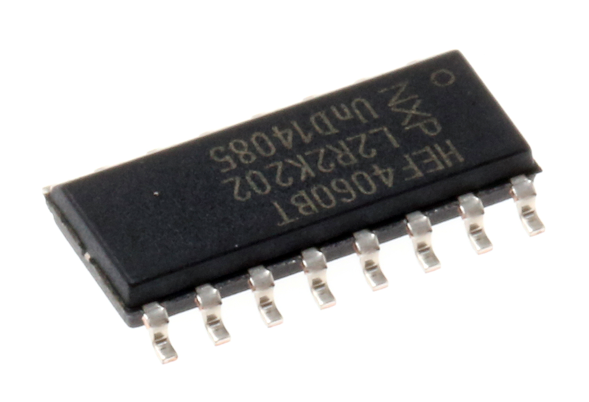 This is 14-stage Binary Counter Up Counter 3 → 15 V 16-Pin SOIC manufactured by Nexperia. The manufacturer part number is HEF4060BT,652. Moreover, it has a/an binary type counter . It carries 1 elements. The given dimensions of the product include 10 x 4 x 1.45mm. The product is available in surface mount configuration. While is configured as uni-directional. While its minimum operating supply voltage is 3 v. The primary function of logic includes counter, divider. The logic family is 4000. It contains 16 pins. Its operation mode is up counter . The package is a sort of soic. It includes 14 stages. Whereas, the minimum operating temperature of the product is -40 °c. It has 15 v maximum operating supply voltage. It is tailored with a negative edge type triggering . It has a maximum operating temperature of 85 °c. It has a/an asynchronous type reset .