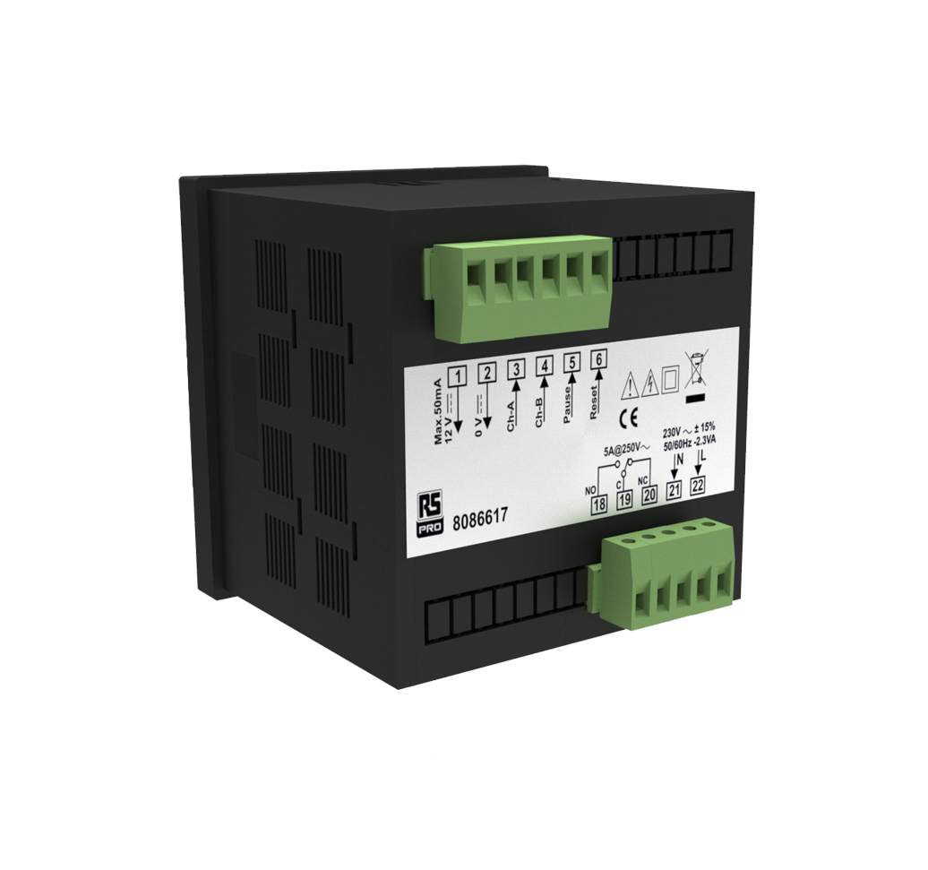 This is 6 Digit LED Digital Counter 20kHz 230 V ac manufactured by RS Pro. The manufacturer part number is 808-6617. The product has +50°c maximum temperature. Whereas, its cutout size is approximately 72 x 72 mm . It counts in seconds mode . Features 230 v ac supply voltage. It carries transistor input type. It has a/an relay output/interface . It performs basic function of counter. Moreover, it has a/an automatic, manual reset method . The product complies with ce; gost-r. It contains 6 digits . Its cutout height is 72mm . It has a maximum operating temperature of +50°c. Its display range is 0 → 99.99 . A bespoke product is a robust mechanical meter with various applications. Its measurement range is 0 → 99.99 . Its digit height is about 8 mm, 10.8 mm . The product comes in 95.5mm depth. It features a remarkable led display. Moreover, its cutout is 72mm in width . The typical product's weight is 270g. The product is available in panel mount configuration. Whereas, the minimum operating temperature of the product is 0°c. Its count direction is bi-directional . Moreover, it has a maximum 20khz count frequency . It allows flying lead connection type.