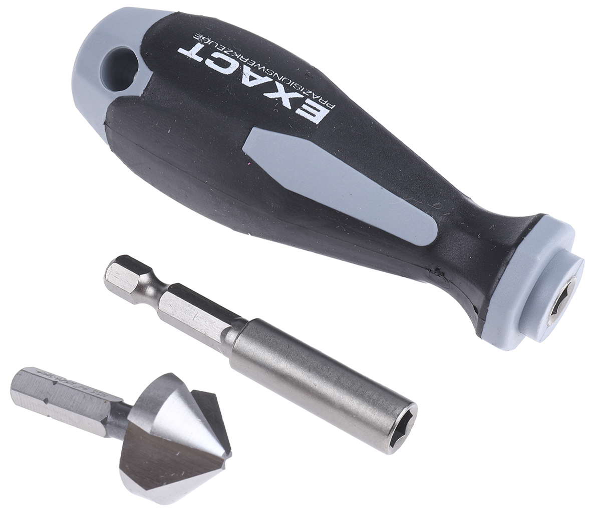 This is HSS 6.3 → 20.5 mm 9 piece 90° Countersink Drill Bit Set manufactured by EXACT. The manufacturer part number is 05649. The diameter of the head is [Head diameter]. The product is made from highly stable and reliable hss. Additionally, it has a 90° countersink angle . It has a/an countersink set type drill bit . The product consists of 3 flutes. The product consists of 9 pieces.