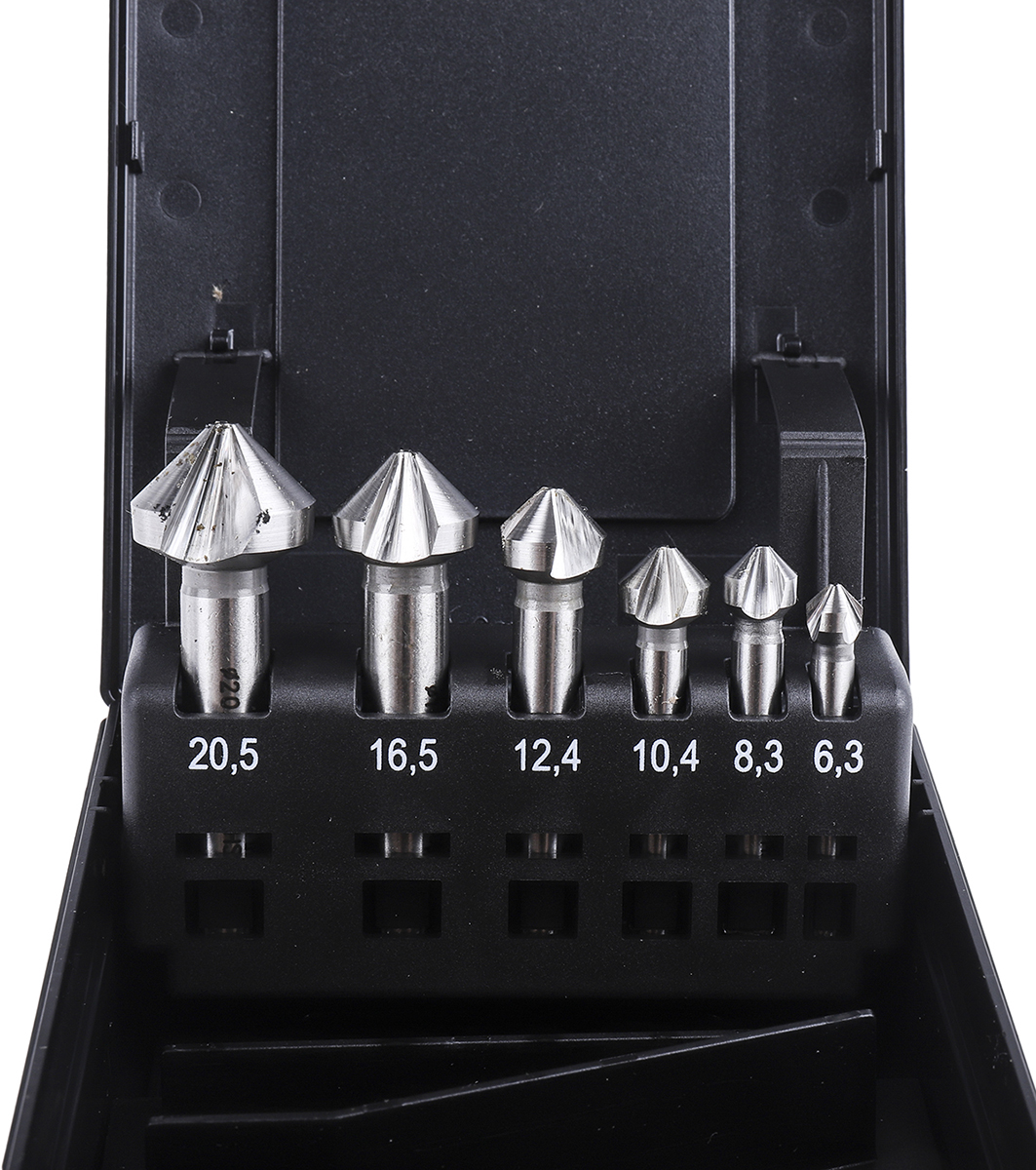This is HSS 6.3 → 20.5 mm 6 piece 90° Countersink Drill Bit Set manufactured by EXACT. The manufacturer part number is 05527. The diameter of the head is [Head diameter]. The product is made from highly stable and reliable hss. Additionally, it has a 90° countersink angle . It has a/an countersink set type drill bit . The product consists of 3 flutes. The product consists of 6 pieces.
