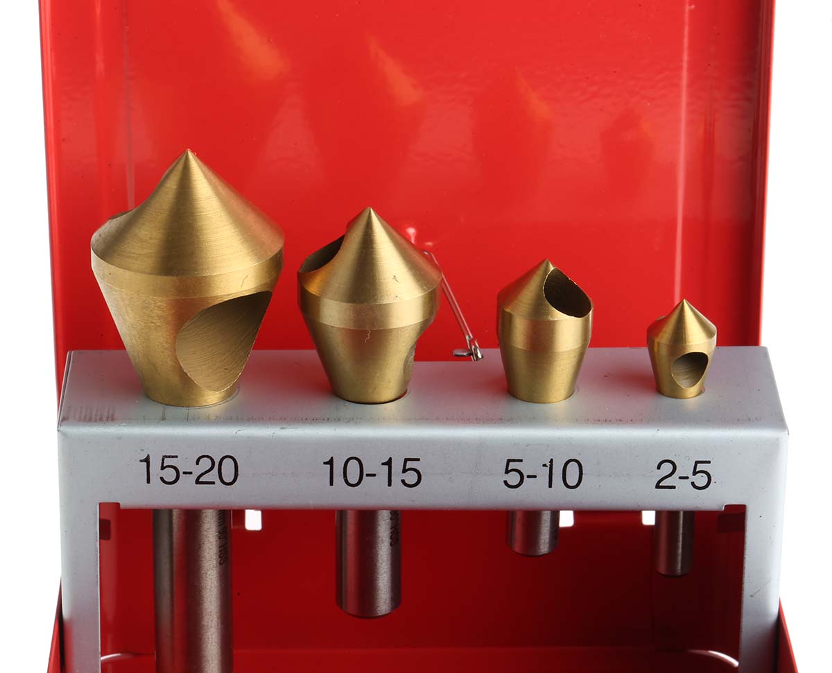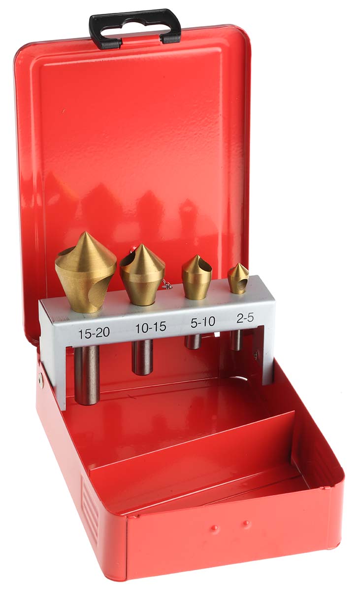This is HSS 2 → 20 mm 4 piece 90° Countersink Drill Bit Set manufactured by RS Pro. The manufacturer part number is 215-467. It has a/an countersink set type drill bit . Additionally, it has a 90° countersink angle . The diameter of the head is [Head diameter]. The product is made from highly stable and reliable hss. The product consists of 4 pieces.