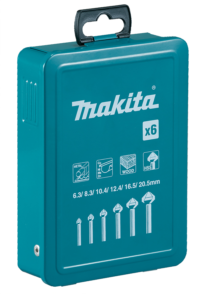 This is COUNTERSINK 6PC BIT SET manufactured by Makita. The manufacturer part number is D-42204. It has a/an countersink set type drill bit . Additionally, it has a 90° countersink angle . The diameter of the head is [Head diameter]. The product consists of 6 pieces. It has an overall length of 45 mm, 50 mm, 56 mm, 60 mm, 63 mm.