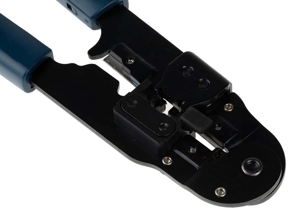 This is Cable Crimper for RJ45 203mm manufactured by Roline. The manufacturer part number is 19.06.1020-10. Ratcheting Options - no. It has an overall length of 203 mm. The product is highly suitable for rj45 connectors. It allows to operate using hand. crimp tool is a versatile product designed to provide user-defined applications.