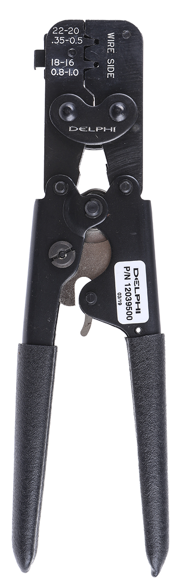 This is Crimping Tool Minimum 16 AWG 20 AWG Maximum 18 AWG 22 AWG manufactured by Delphi. The manufacturer part number is 12039500. The product is highly suitable for metri-pack 150 connector contacts. It allows to operate using hand. crimp tool is a versatile product designed to provide user-defined applications. Ratcheting Options - yes.
