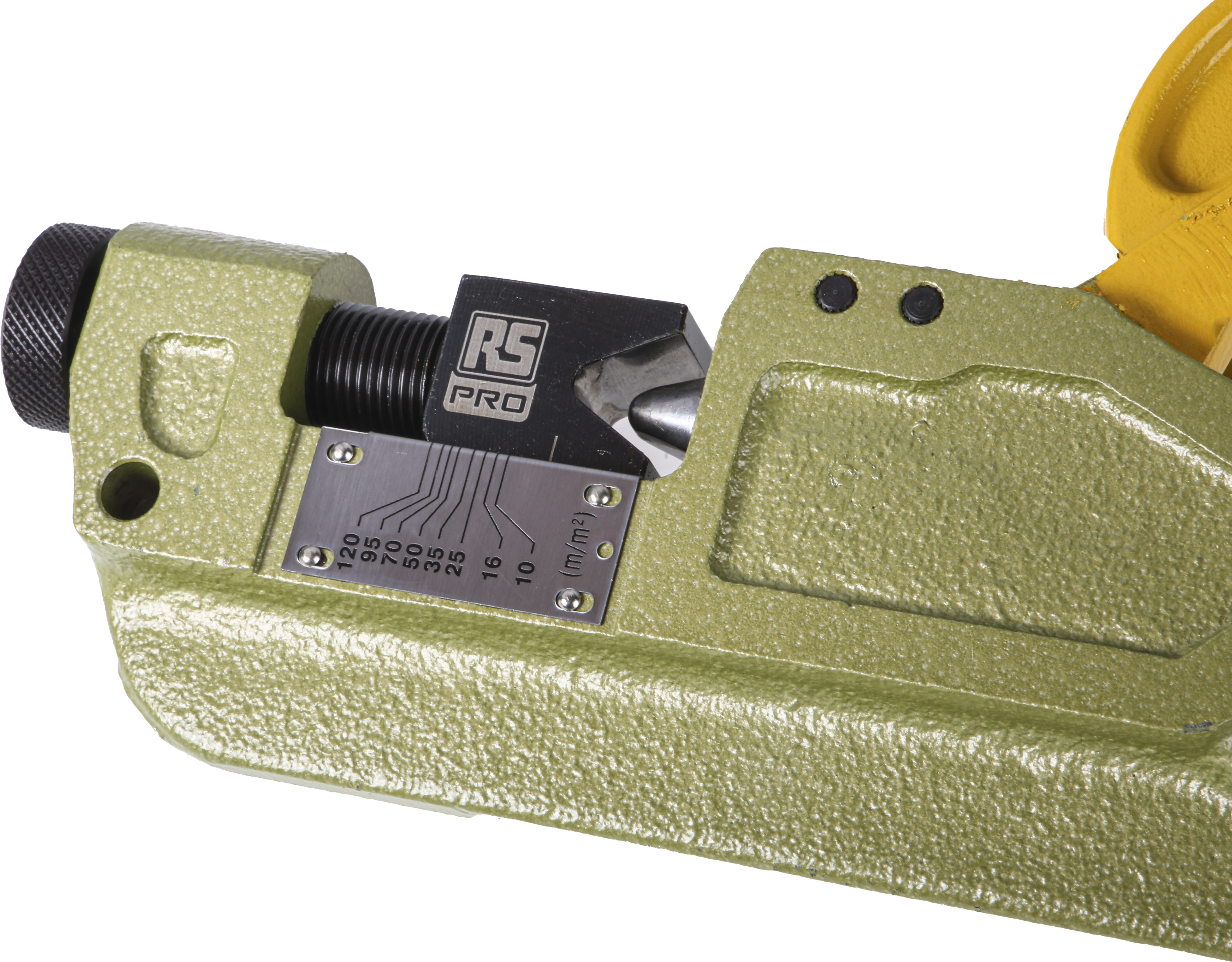 This is Crimping Tool Crimp Terminal Minimum 10mm² Maximum 95mm² manufactured by RS Pro. The manufacturer part number is 445-611. Ratcheting Options - no. Its wire size is about 8awg . It has an overall length of 225 mm. The product is highly suitable for tubular cable lugs. It allows to operate using hand. crimp tool is a versatile product designed to provide user-defined applications. It has 10 → 95mm² size wire in mm² .