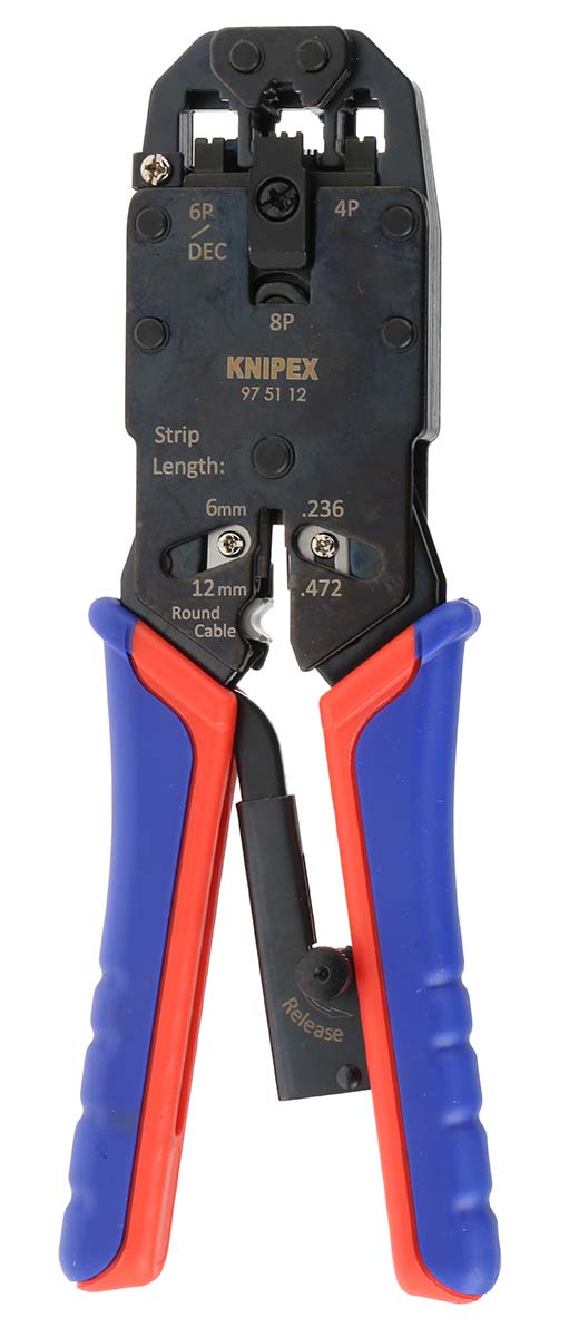 This is Crimping Tool Modular Plug manufactured by Knipex. The manufacturer part number is 97 51 12. Ratcheting Options - yes. It has an overall length of 190 mm. It is height safe no . The product is highly suitable for fiches western. It allows to operate using hand. crimp tool is a versatile product designed to provide user-defined applications.
