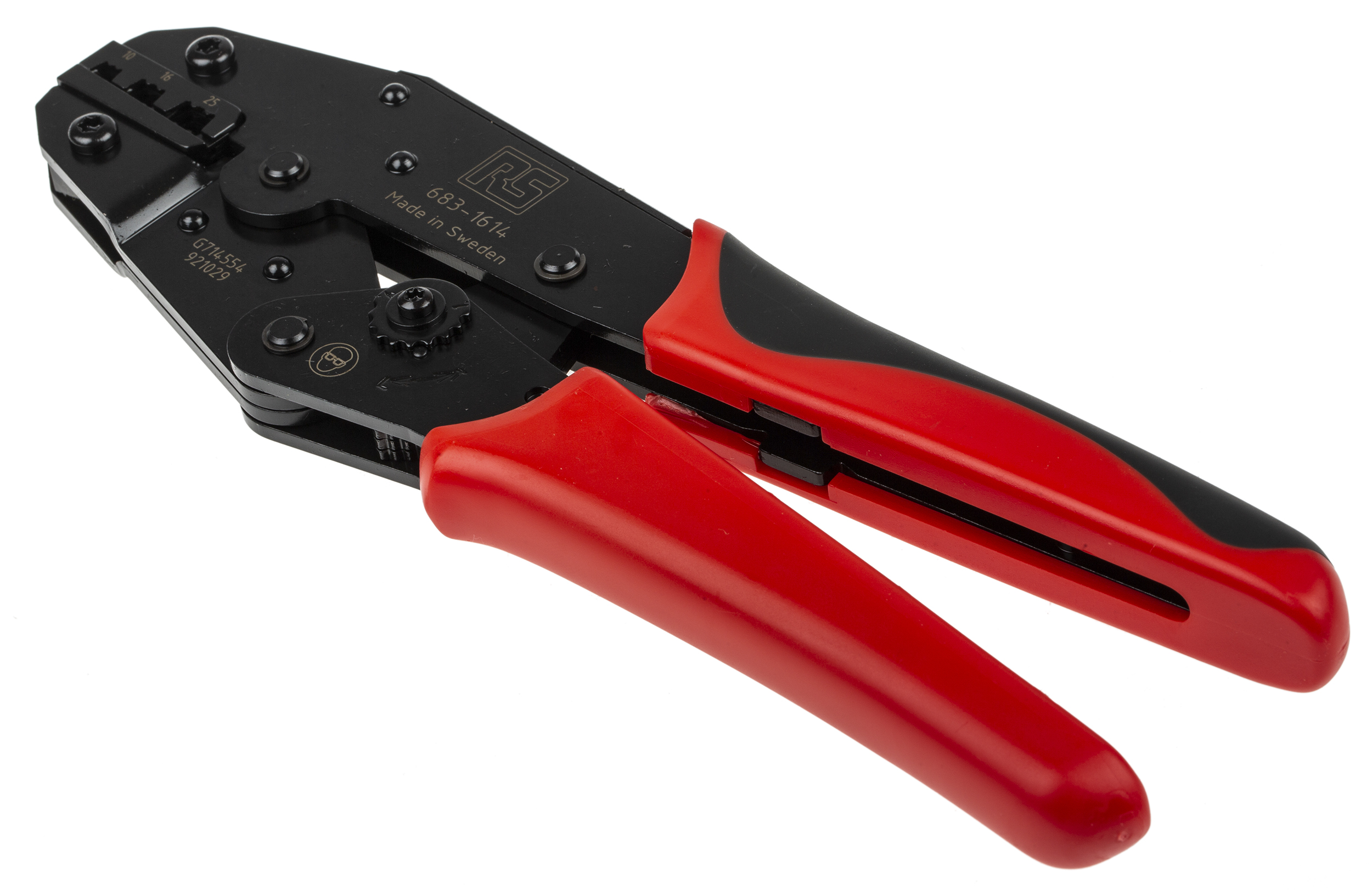 This is Ratchet Crimping Tool for Bootlace Ferrule 10 - 25 mm² manufactured by RS Pro. The manufacturer part number is 683-1614. Ratcheting Options - yes. It has an overall length of 230 mm. Its wire size is about 8 → 4awg . It is offered with trapezoidal crimp profile . It is height safe no . The product is highly suitable for wire end sleeves. It allows to operate using hand. crimp tool is a versatile product designed to provide user-defined applications. It has 10 → 25mm² size wire in mm² .
