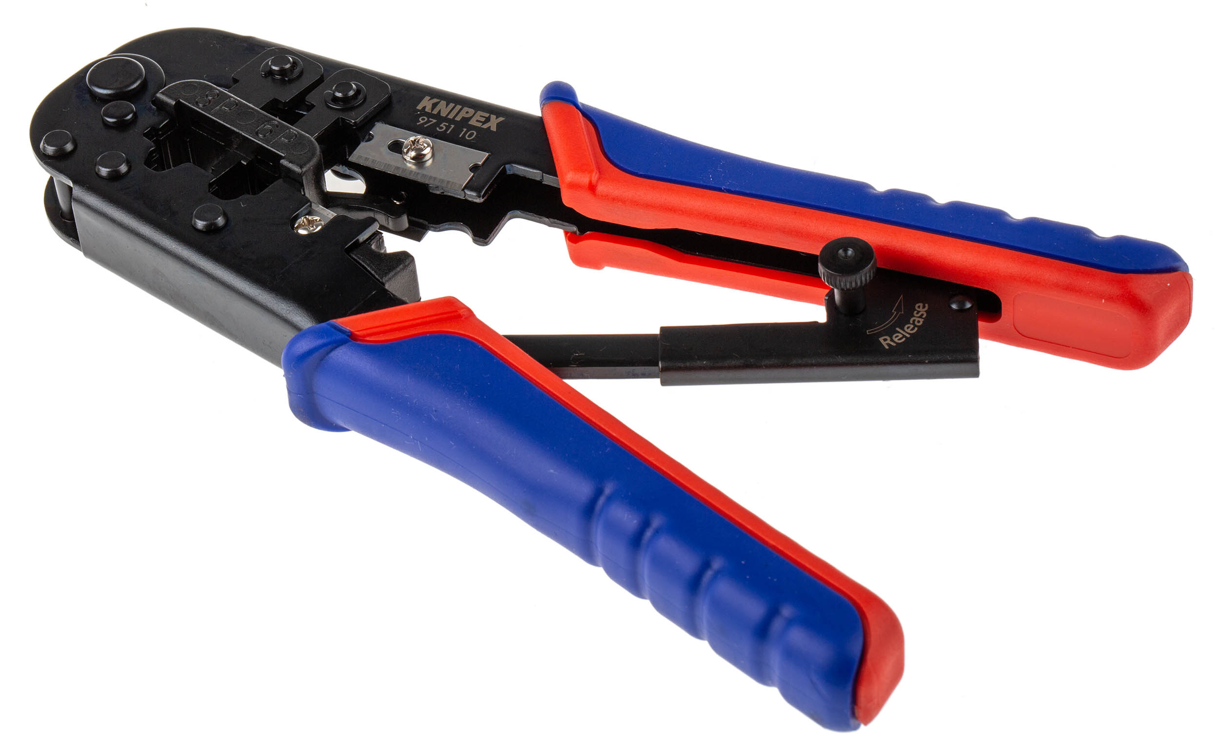 This is Crimping Tool for Modular Plug RJ11 RJ12 RJ45 manufactured by Knipex. The manufacturer part number is 97 51 10. Ratcheting Options - yes. It has an overall length of 190 mm. It is height safe no . The product is highly suitable for fiches western. It allows to operate using hand. crimp tool is a versatile product designed to provide user-defined applications.