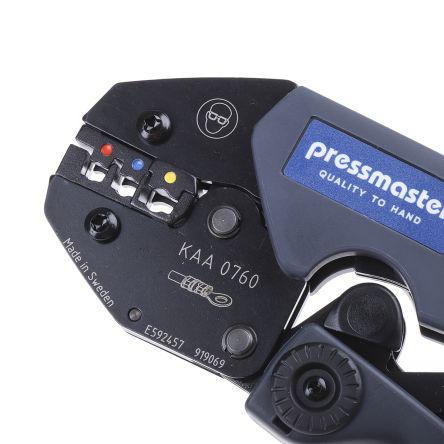 This is KAA 0760 Ratchet Crimping Tool for Insulated Terminal manufactured by Pressmaster. The manufacturer part number is 4300-3686. The product kaa 0760, is a highly preferred choice for users. Its crimp connector type is insulated terminal . It includes ratchet type crimp tool . It has an overall length of 255mm.