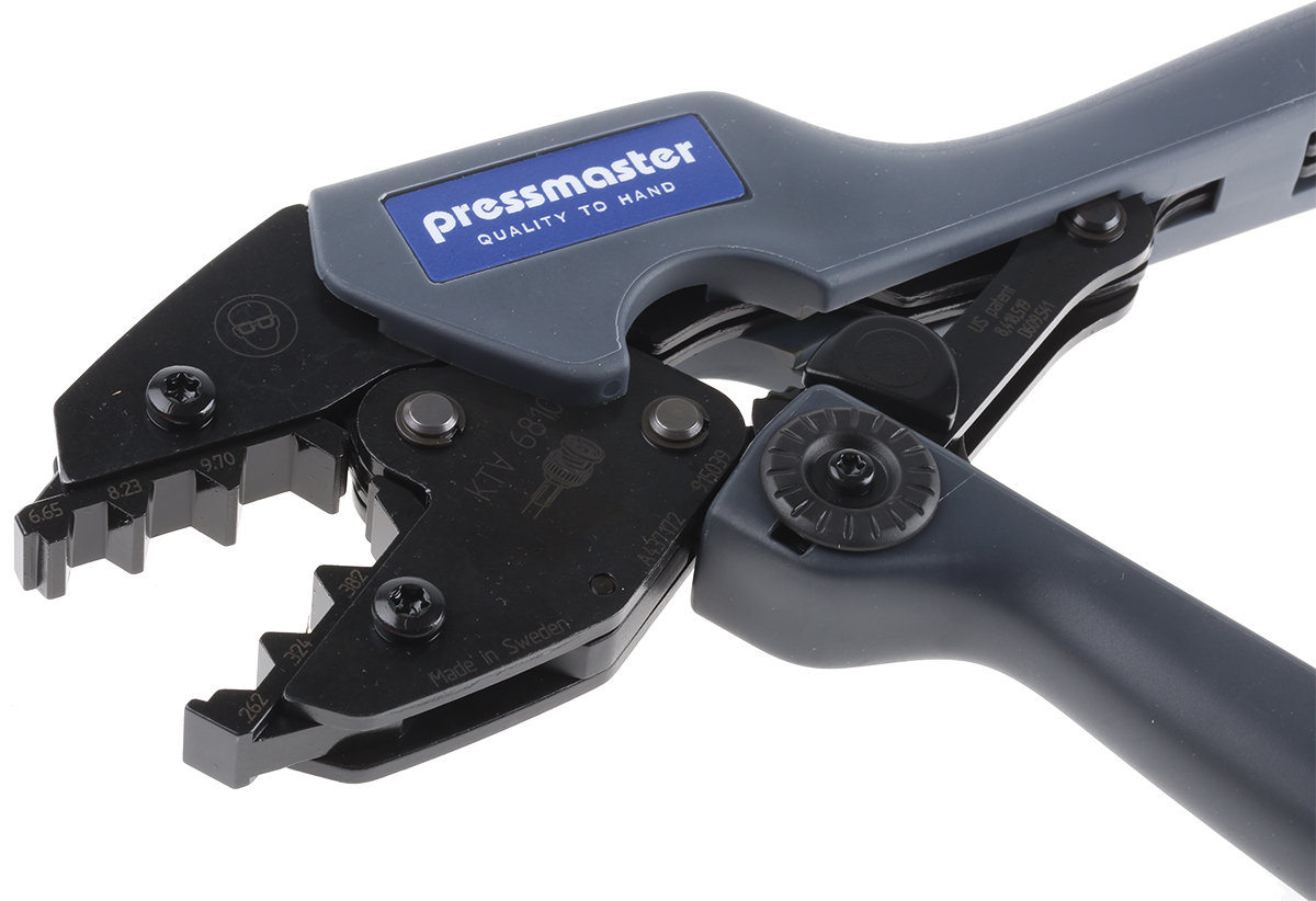 This is Ratchet Crimping Tool manufactured by Pressmaster. The manufacturer part number is 4300-2438. It allows to operate using hand. crimp tool is a versatile product designed to provide user-defined applications. Ratcheting Options - yes.