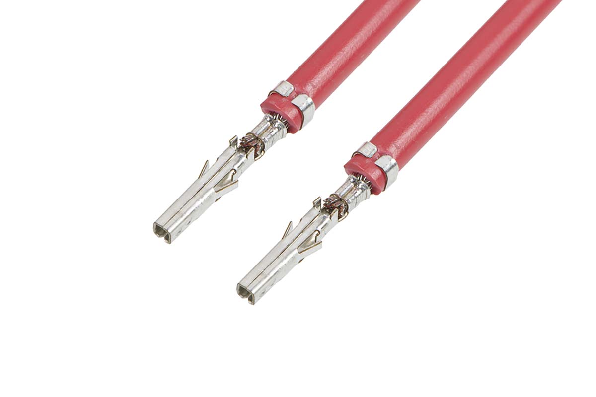 This is MINI-FIT JR. F-S 150MM 18 AWG RD Au manufactured by Molex. The manufacturer part number is 215341-2212. It has a/an mini-fit jr. crimp terminal 1 . It has a/an unterminated crimp terminal 2 . The product has a current rating of 9 a. The product mini-fit jr., is a highly preferred choice for users. The wire has a ul1015 style. The sheath has an adorable red colour. The high-quality gold is used as contact plating material. Concerning wire's size, it is 0.75mm². Furthermore, the cable has a 150mm of length. It carries [Serial Number] serial number.