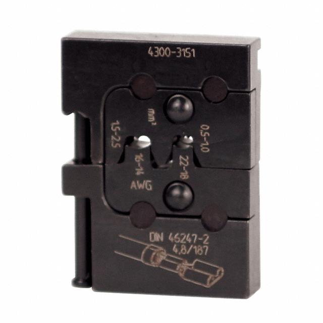 This is manufactured by Wiha. The manufacturer part number is 43151. This is basically a useful and handy die set. It is assigned with possible HTSUS value of 8207.90.7585. It is shipped in box package . The product porta-crimp, is a highly preferred choice for users. The product is not applicable. In addition, it is reach unaffected. Its typical moisture sensitivity level is not applicable. The product is suitable for use with quick connects terminals, 14-22 awg. The compatible tools include 43149. The product is designated with the ear99 code number.