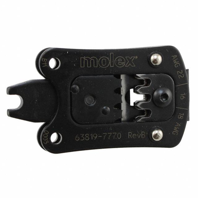 This is manufactured by Molex. The manufacturer part number is 0638197770. The product is suitable for use with rectangular contacts, 16-20 awg. This is basically a useful and handy crimp head. It is assigned with possible HTSUS value of 8207.90.7585. It is shipped in bulk package . The product premiumgrade, is a highly preferred choice for users. The product is rohs3 compliant. In addition, it is reach unaffected. Its typical moisture sensitivity level is 1 (unlimited). Moreover, it corresponds to 063819, a base product number of the product. The compatible tools include 63816-0100, 63816-0200, 63819-7700. The product is designated with the ear99 code number.
