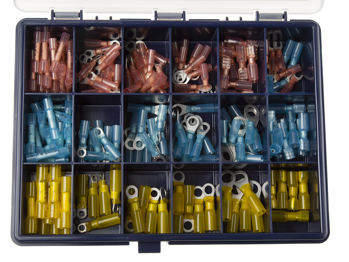 Heat-shrinkable pre-insulated nylon splices and crimp terminals from the world-renowned TE Connectivity create reliable connections in settings where environmental sealing is paramount. They are built to cover cables of various sizes, where water or dampness can be an issue. To securely create a joint, the cable connectors should be crimped traditionally, and sleeving should then be heated to shrink around the cable.