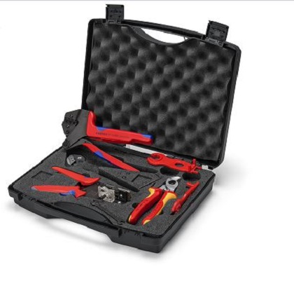 This is Tool Case Crimp Crimp terminal Kit manufactured by Knipex. The manufacturer part number is 97 91 04 V01. It comes in tool case configuration. crimp Connector type offer robust functionality. This versatile kit contents include cable shears, crimp system pliers, precision insulation stripper components.
