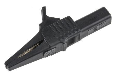 This is Crocodile Clip Steel Contact 30A Black manufactured by Mueller. The manufacturer part number is BU-65-0. Equipped with a 19mm jaw opening. The product is insulated yes . The product has a current rating of 30a. It has a decent black colour. It has a robust glass fibre reinforced nylon insulation material. The product is made from sturdy steel materials.