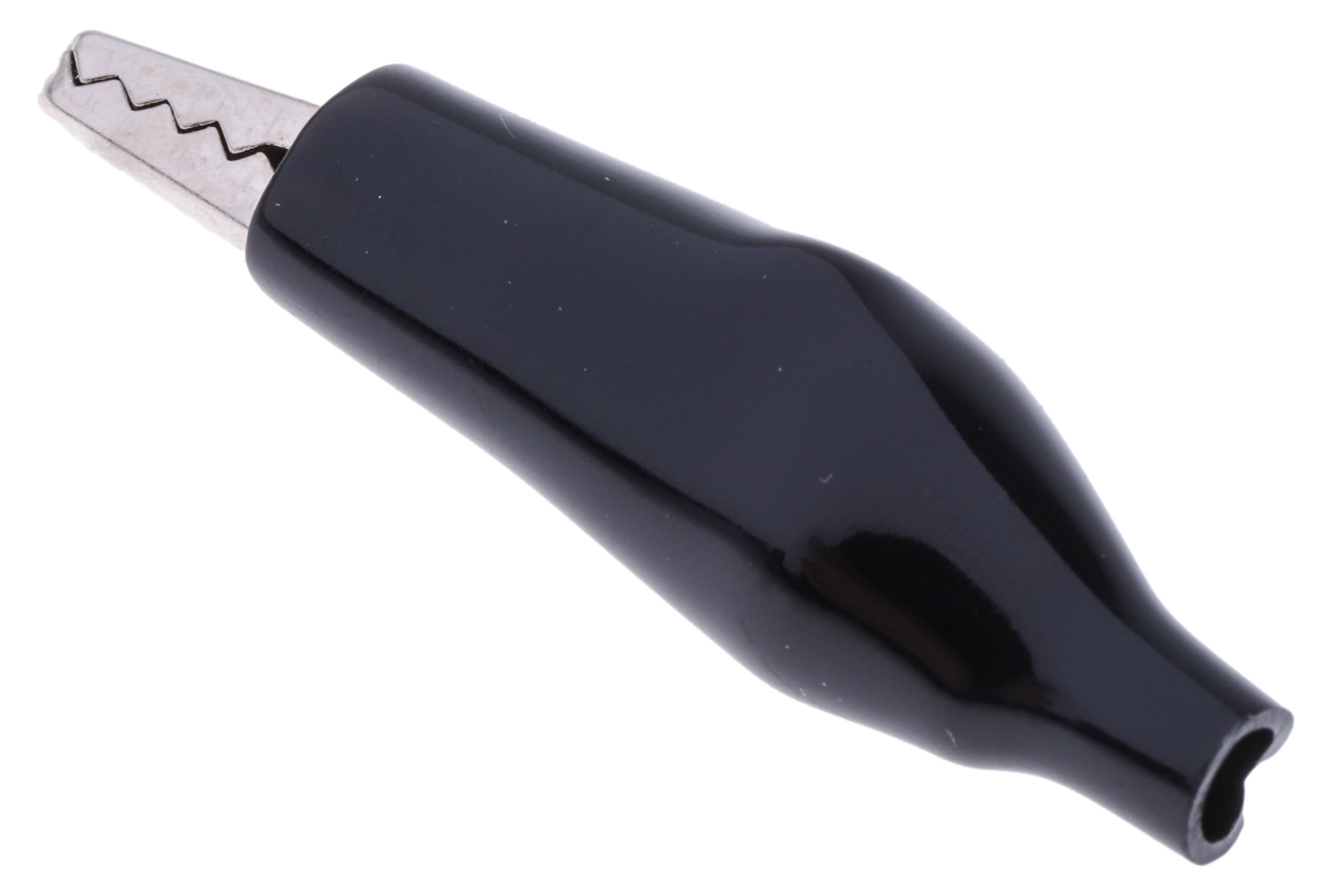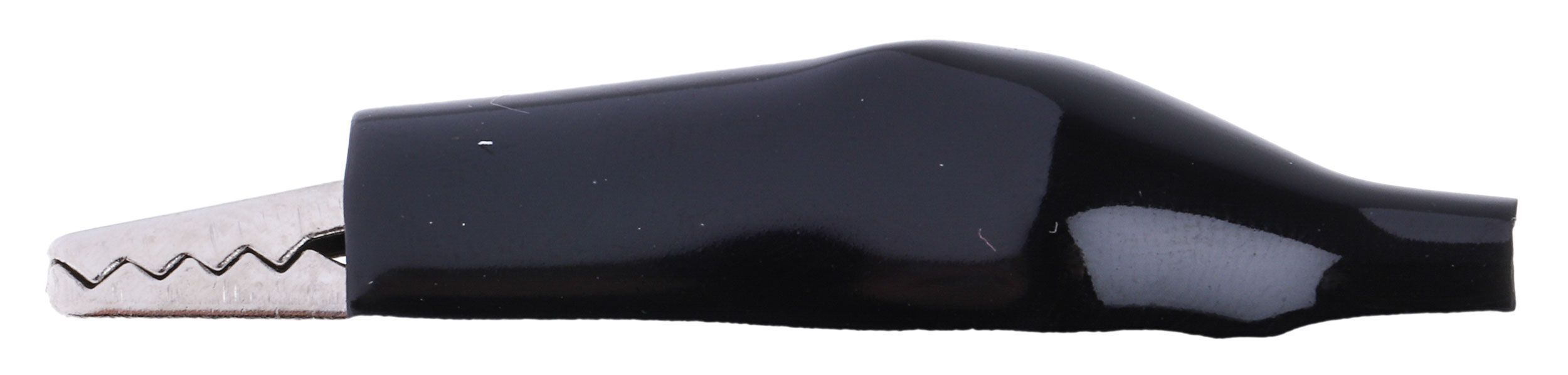 This is Crocodile Clip Black manufactured by Orbitec. The manufacturer part number is 63-26606E PKTS.OF 10. Equipped with a 6mm jaw opening. It has a decent black colour. The product is insulated yes . It has a robust vinyl insulation material.