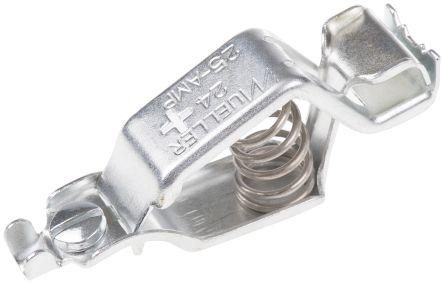 This is Grabber Clip Zinc-Plated Steel Contact 25A Natural manufactured by Mueller. The manufacturer part number is BU-24APS. Equipped with a 19mm jaw opening. It has a decent natural colour. The product has a current rating of 25a. The product is made from sturdy zinc-plated steel materials.