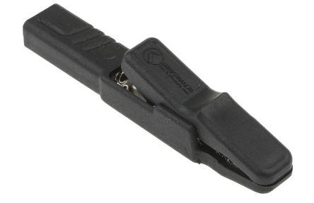 This is Crocodile Clip 30A Black manufactured by ADAPTIVE INTERCONNECT. The manufacturer part number is 126024/B. Equipped with a 22mm jaw opening. The product is insulated yes . The product has a current rating of 30a. It has a decent black colour.