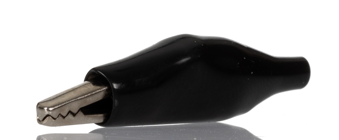 This is Crocodile Clip Nickel-Plated Iron Contact Black manufactured by RS Pro. The manufacturer part number is 483-859. Equipped with a 8mm jaw opening. The product is insulated yes . The product has a current rating of 5a. It has a decent black colour. It has a robust pvc insulation material. The product is made from sturdy nickel-plated steel materials.