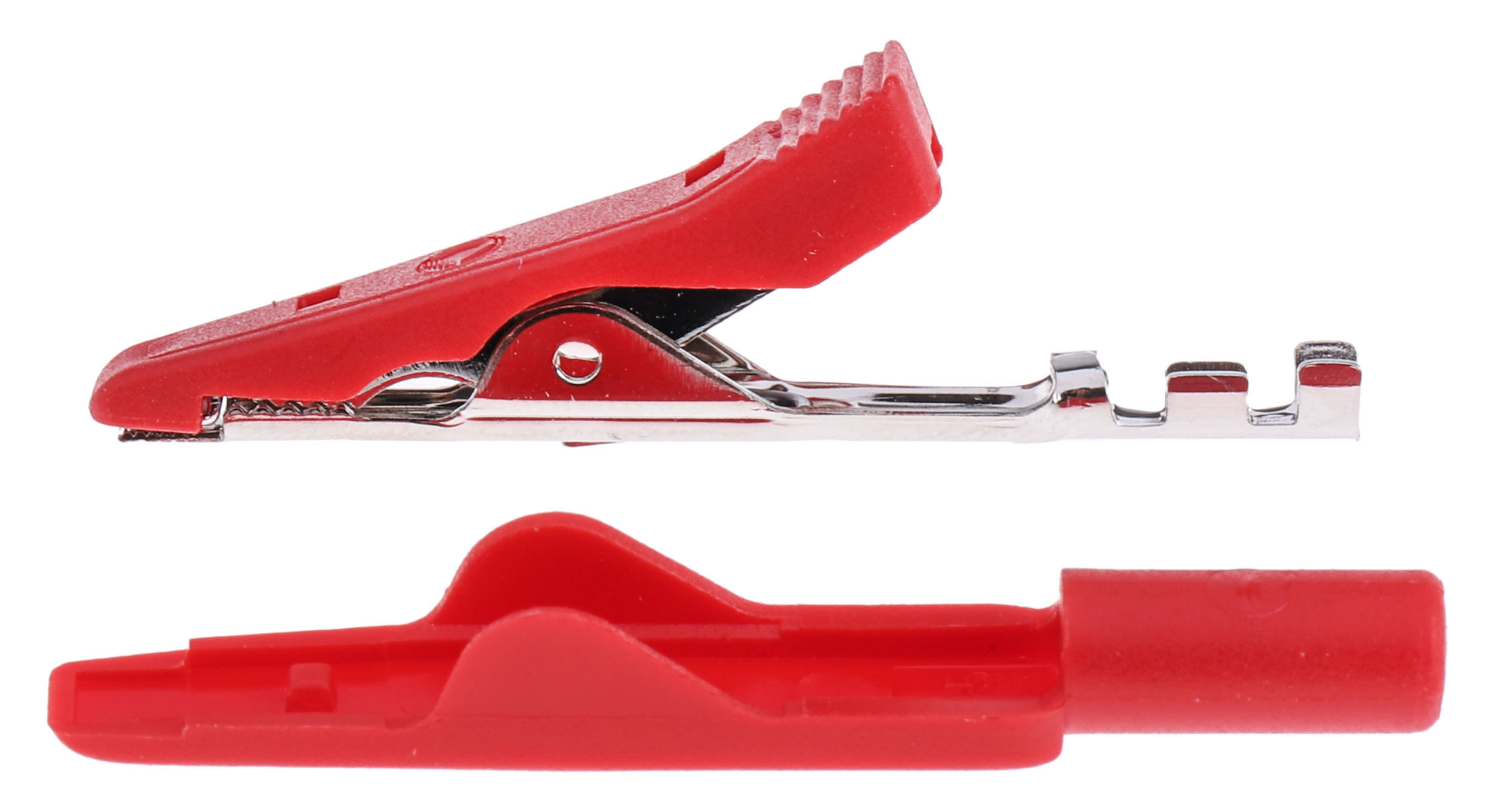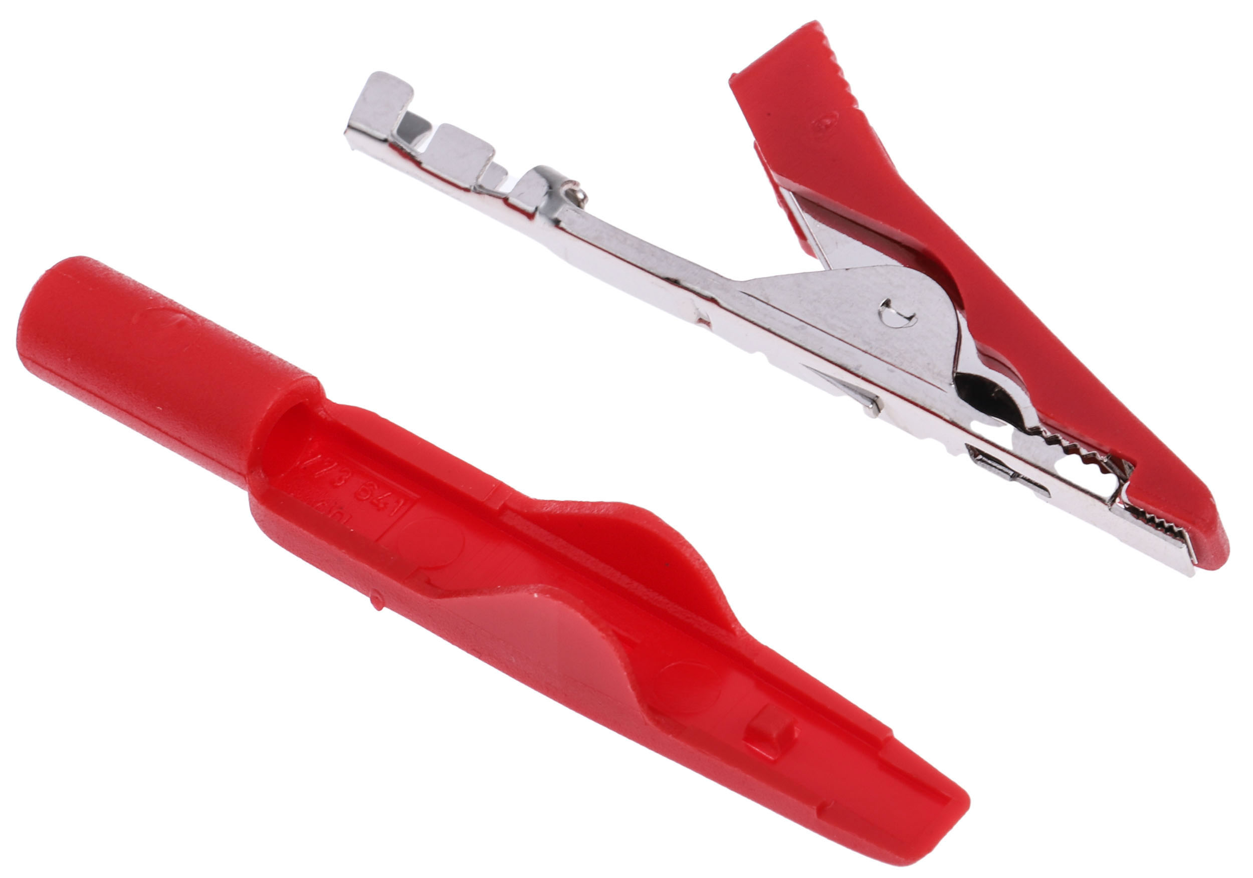 This is Crocodile Clip Brass Bronze Contact 8A Red manufactured by Hirschmann Test & Measurement. The manufacturer part number is 930318101. Equipped with a 4mm jaw opening. The product is insulated yes . The product has a current rating of 8a. It has a decent red colour. It has a robust pp insulation material. The product is made from sturdy brass, bronze materials.
