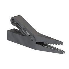 This is Crocodile Clip Brass Contact 10A Black manufactured by HCK. The manufacturer part number is 64.9209-21. Equipped with a 12mm jaw opening. The product is insulated yes . The product has a current rating of 10a. It has a decent black colour. The product is made from sturdy brass materials.