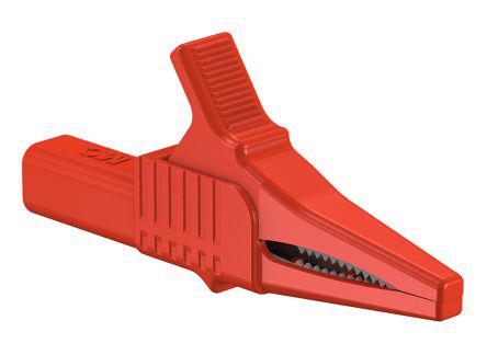 This is Crocodile Clip Brass Contact 32A Red manufactured by HCK. The manufacturer part number is 66.9755-22. Equipped with a 20mm jaw opening. The product is insulated yes . The product has a current rating of 32a. It has a decent red colour. It has a robust nylon insulation material. The product is made from sturdy brass materials.