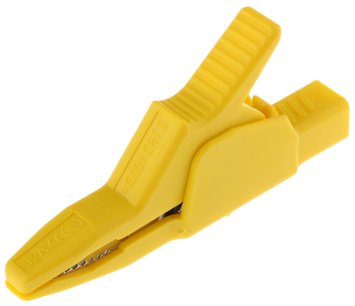 This is Crocodile Clip Brass Contact 32A Yellow manufactured by Hirschmann Test & Measurement. The manufacturer part number is 972405103. Equipped with a 30mm jaw opening. The product is insulated yes . The product has a current rating of 32a. It has a decent yellow colour. 4 mm Connector type offer robust functionality. It has a robust pp insulation material. The product is made from sturdy brass materials.