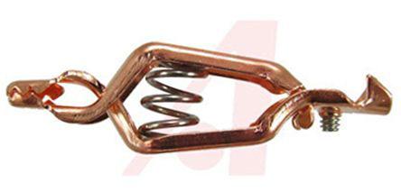 This is Crocodile Clip Brown Copper Contact 40A manufactured by ADAPTIVE INTERCONNECT. The manufacturer part number is 501996C. Equipped with a 15.84mm jaw opening. It has a decent brown colour. The product has a current rating of 40a. The product is made from sturdy copper materials.