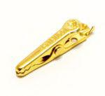 This is Miniature Alligator clip Barrel - 5 Amp manufactured by Mueller. The manufacturer part number is BU-30G. Equipped with a 4.8mm jaw opening. The product is insulated yes . The product has a current rating of 5a. It has a decent gold colour. It has a robust pvc insulation material.