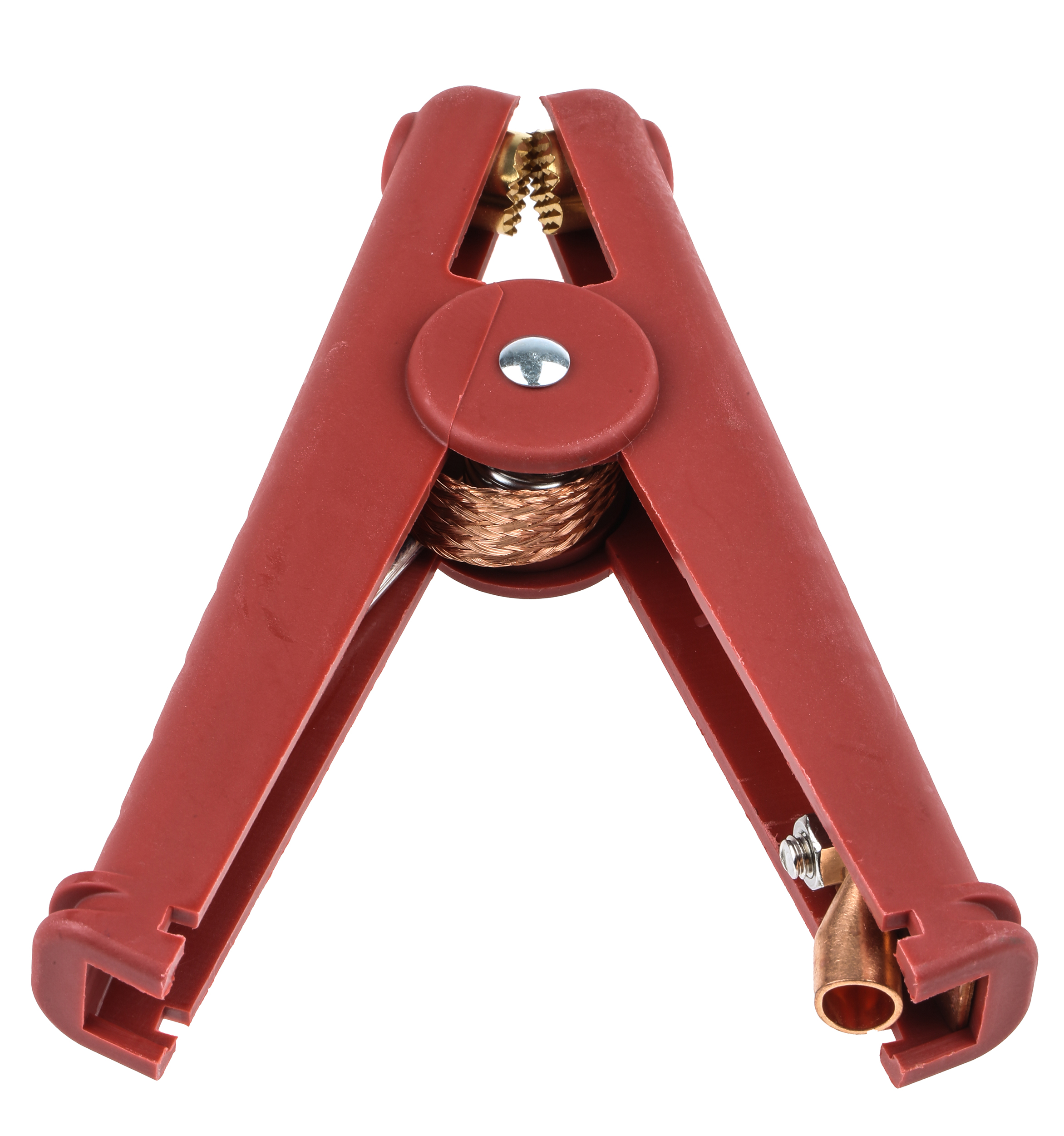 This is Mueller Crocodile Clip Copper Contact 400A Red manufactured by Mueller Electric. The manufacturer part number is BU-102W-2. Equipped with a 41mm jaw opening. The product is insulated yes . The product has a current rating of 400a. It has a decent red colour. The product is made from sturdy copper materials.