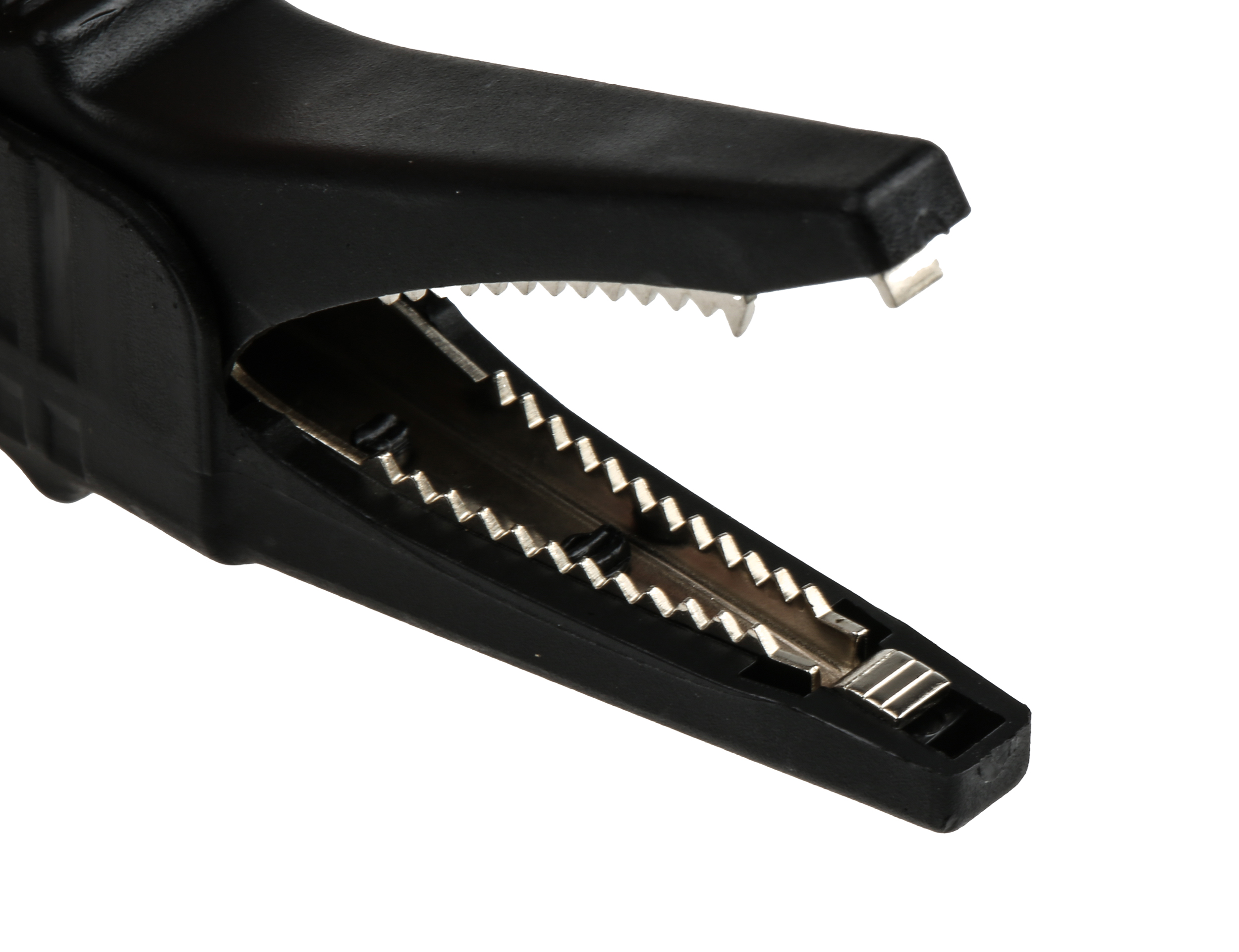 This is Multi Contact Crocodile Clip 32A Black Red manufactured by Staubli. The manufacturer part number is 99.00077. Equipped with a 20mm jaw opening. The product is insulated yes . The product has a current rating of 32a. It has a decent black, red colour. 4 mm Connector type offer robust functionality.