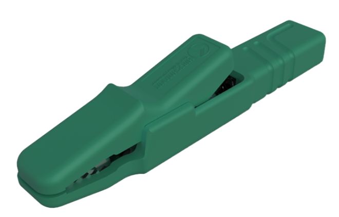 This is Alligator Clip 4 mm Connection Nickel Plated Brass Contact 25A Green manufactured by Hirschmann Test & Measurement. The manufacturer part number is 932146104. Equipped with a 9.5mm jaw opening. The product is insulated yes . The product has a current rating of 25a. It has a decent green colour. 4 mm Connector type offer robust functionality. It has a robust pp insulation material. The product is made from sturdy nickel plated brass materials.