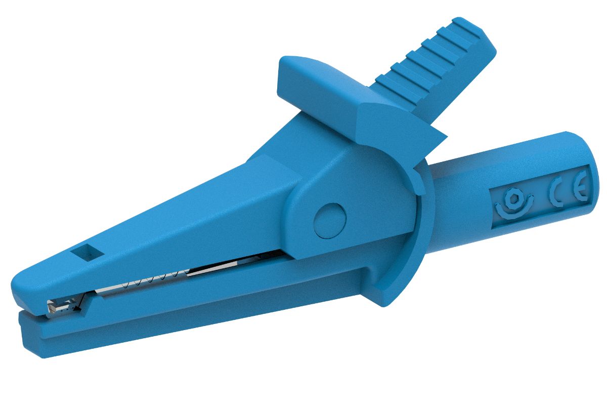 This is Alligator Clip Nickel Plated Brass Contact 10A Blue manufactured by Electro PJP. The manufacturer part number is 5002-IEC-d4-Bl. Equipped with a 8.5mm jaw opening. The product is insulated yes . The product has a current rating of 10a. It has a decent blue colour. The product is made from sturdy nickel plated brass materials.