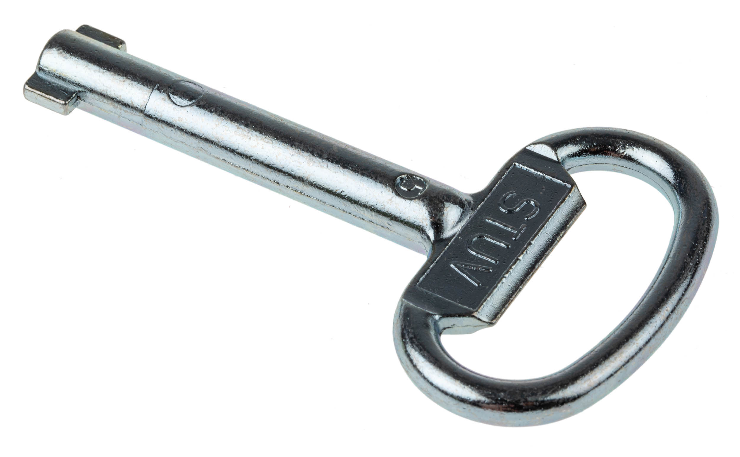 This is Key Die Cast Zinc Chrome Plated manufactured by Steinbach & Vollman. The manufacturer part number is 0.95.0662.0. Moreover, it has 1 key profiles . The module has the capacity of double-bit key 5mm. The key is a control cabinet key key with exquisite design.
