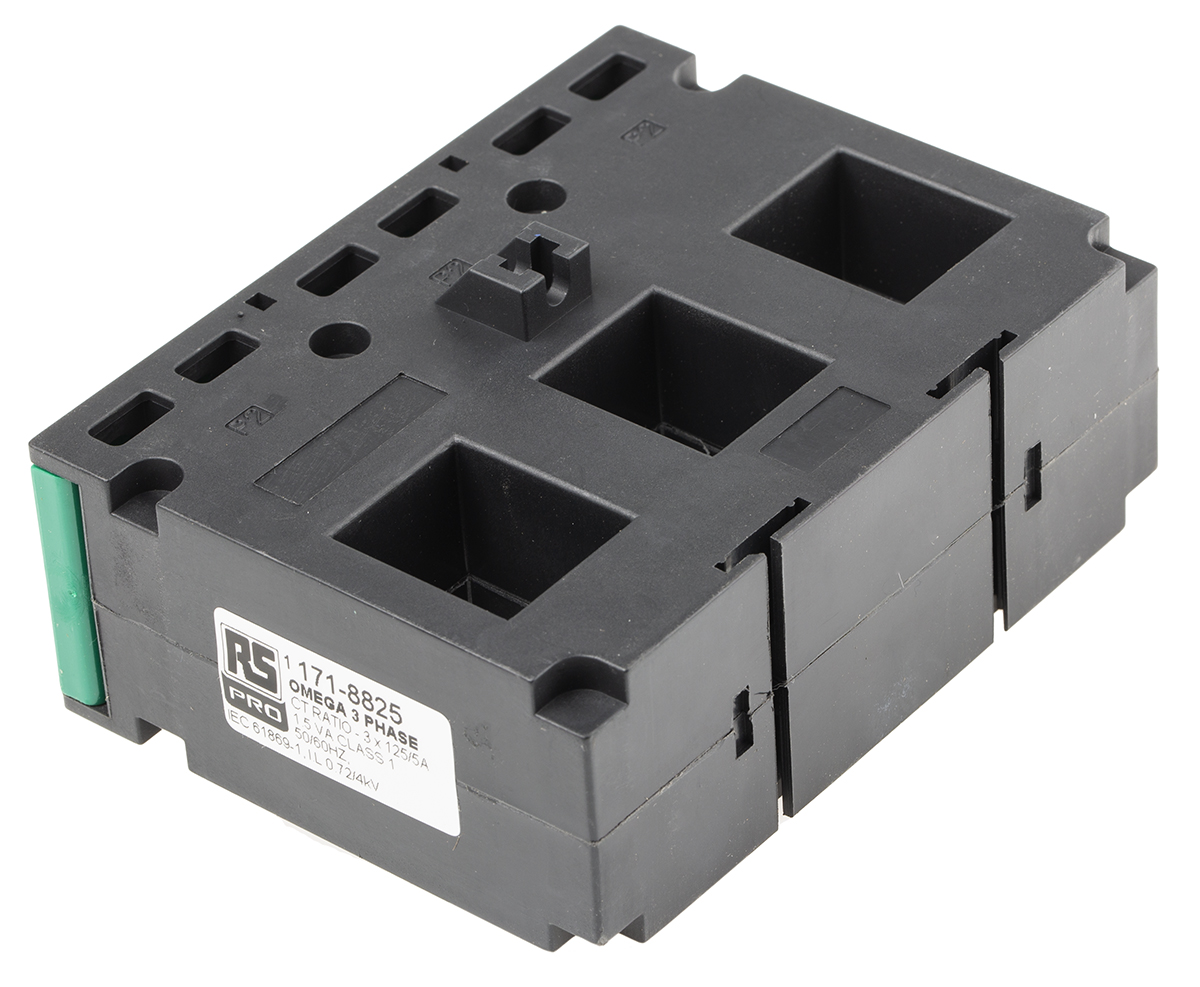 This is Base Mounted Current Transformer 35mm Diameter 125A Input 5 A Output 125:5 manufactured by RS Pro. The manufacturer part number is 171-8825. It has 125:5 of current ratio. Moreover, it has 87.5mm of overall height. The given dimensions of the product include 105 x 38 x 87.5 mm. The product is available in surface mount configuration. It has an overall width of 105mm. The bore has a 35mm size. It is a base mounted transformer. It has about 125a input current . The product is highly suitable for mccb. Similarly, the product has 38mm of overall depth. It carries 5 a output current.
