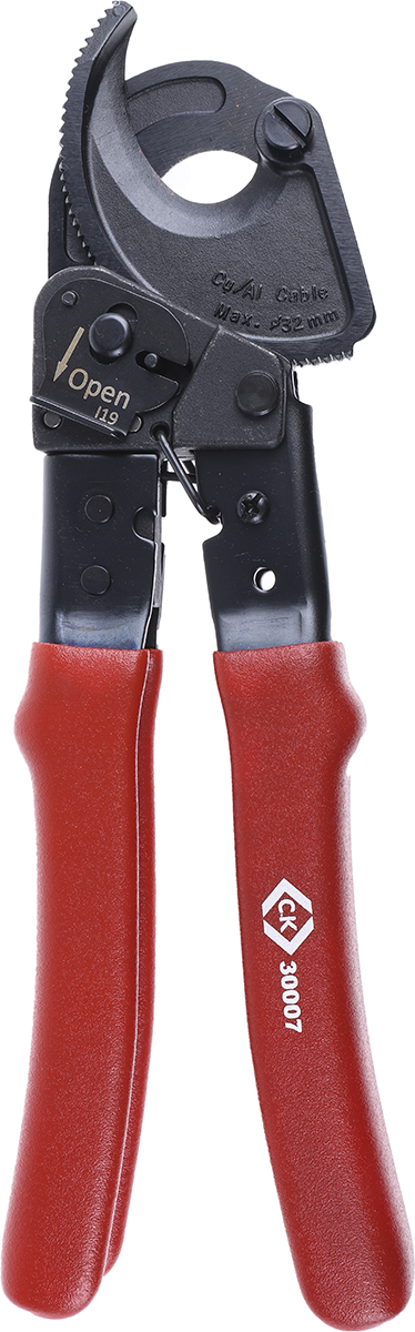 This is C.K Ratchet Cable Cutters 190mm manufactured by CK. The manufacturer part number is 430007. VDE/1000V Approval Options - no. Moreover, it has a maximum 32mm cutting capacity . Moreover, it has a ratchet cable cutters type cutter . The product is tailored with 32mm copper wire cutting capacity . It has a model number 430. It has an overall length of 190 mm.