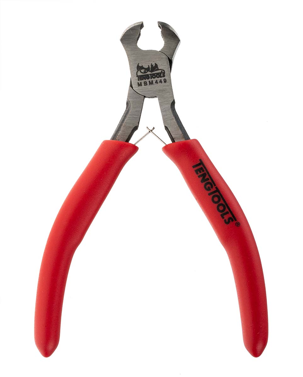 This is 15 mm Mini end cutting plier Cutters High Carbon Steel Non Sparking manufactured by Teng Tools. The manufacturer part number is MBM449. It has a/an end cutter type pincer . Its typical cutting capacity is 0.8 mm . Its comfortable handle is manufactured from durable high carbon steel material. It has an overall length of 110 mm.