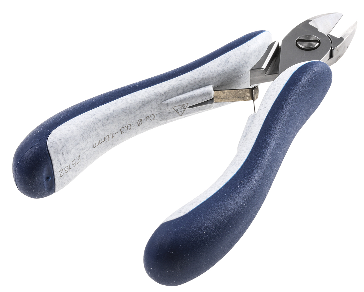 This is 130 mm Electronic Cutters manufactured by ideal-tek. The manufacturer part number is 25.E5162.CRBG. It jaw is about 16mm in length . Moreover, it has a side cutters type cutter . The product is made from highly stable and reliable steel. It has a/an full flush type cut . ESD Safety - yes. It has an overall length of 130 mm.