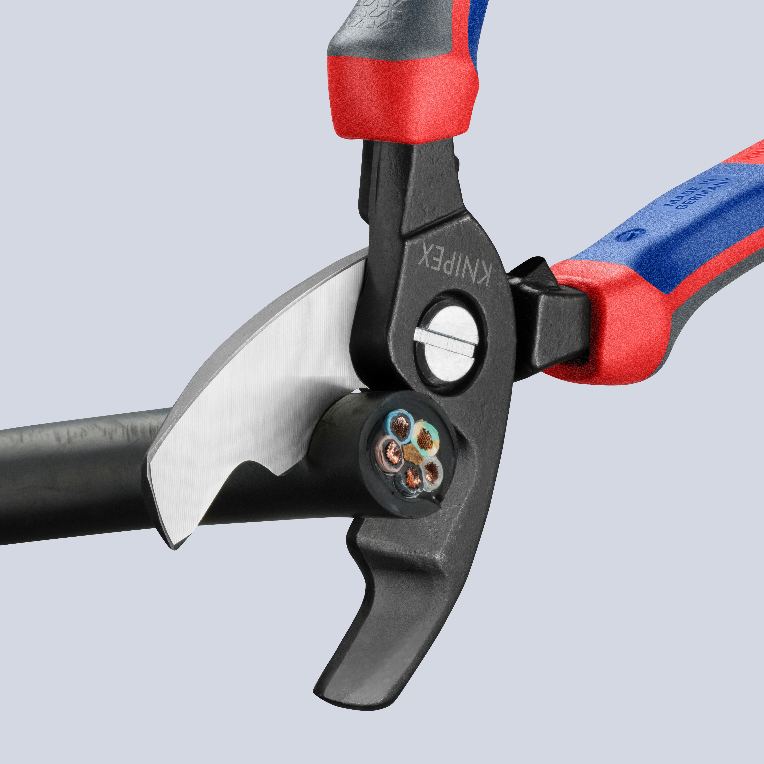 This is 200 mm Cable Shears manufactured by Knipex. The manufacturer part number is 95 12 200. VDE/1000V Approval Options - no. It has a non sparking nature no . Moreover, it has a cable cutters type cutter . The product is tailored with 70 mm² copper wire cutting capacity . The product is made from highly stable and reliable tool steel. It has an overall length of 200 mm. It has a model number knipex. ESD Safety - no. It is offered to cut aluminium wire, copper wire materials . It has 70mm² cutting capacity soft wire . It is height safe no . Moreover, it has a maximum 20mm cutting capacity .