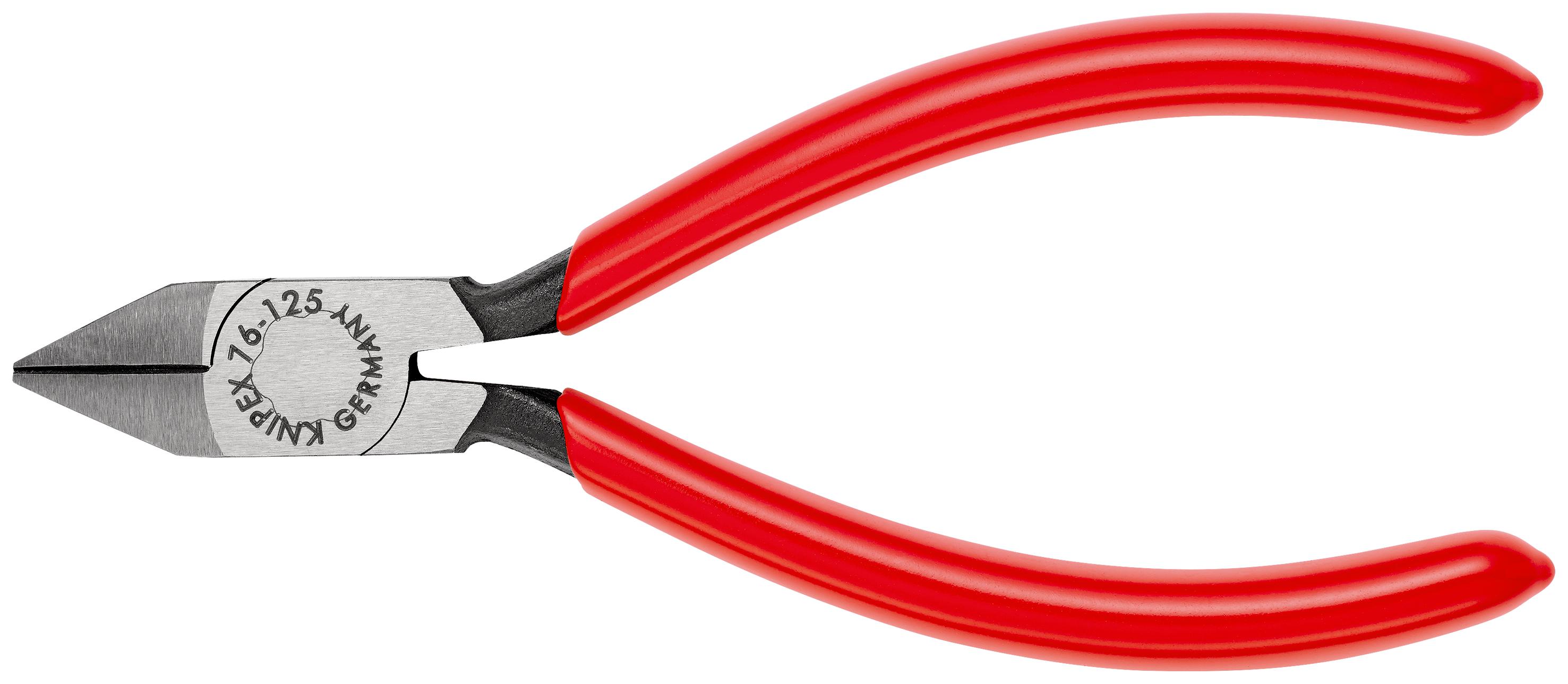 This is Side Cutters manufactured by Knipex. The manufacturer part number is 76 81 125. Moreover, it has a maximum 1.7mm cutting capacity . It has a non sparking nature no . Moreover, it has a side cutters type cutter . The product is tailored with 1.7mm copper wire cutting capacity . The product is made from highly stable and reliable special quality tool steel. It has an overall length of 125 mm. It has a model number 76 81 125. It has a/an small bevel type cut . Furthermore, it has about 1.3mm soft steel wire cutting capacity . ESD Safety - no. It is offered to cut copper wire, steel wire materials . The product has about 1,3mm stranded wire cutting capacity . It has 1.3mm cutting capacity soft wire . It is height safe no .