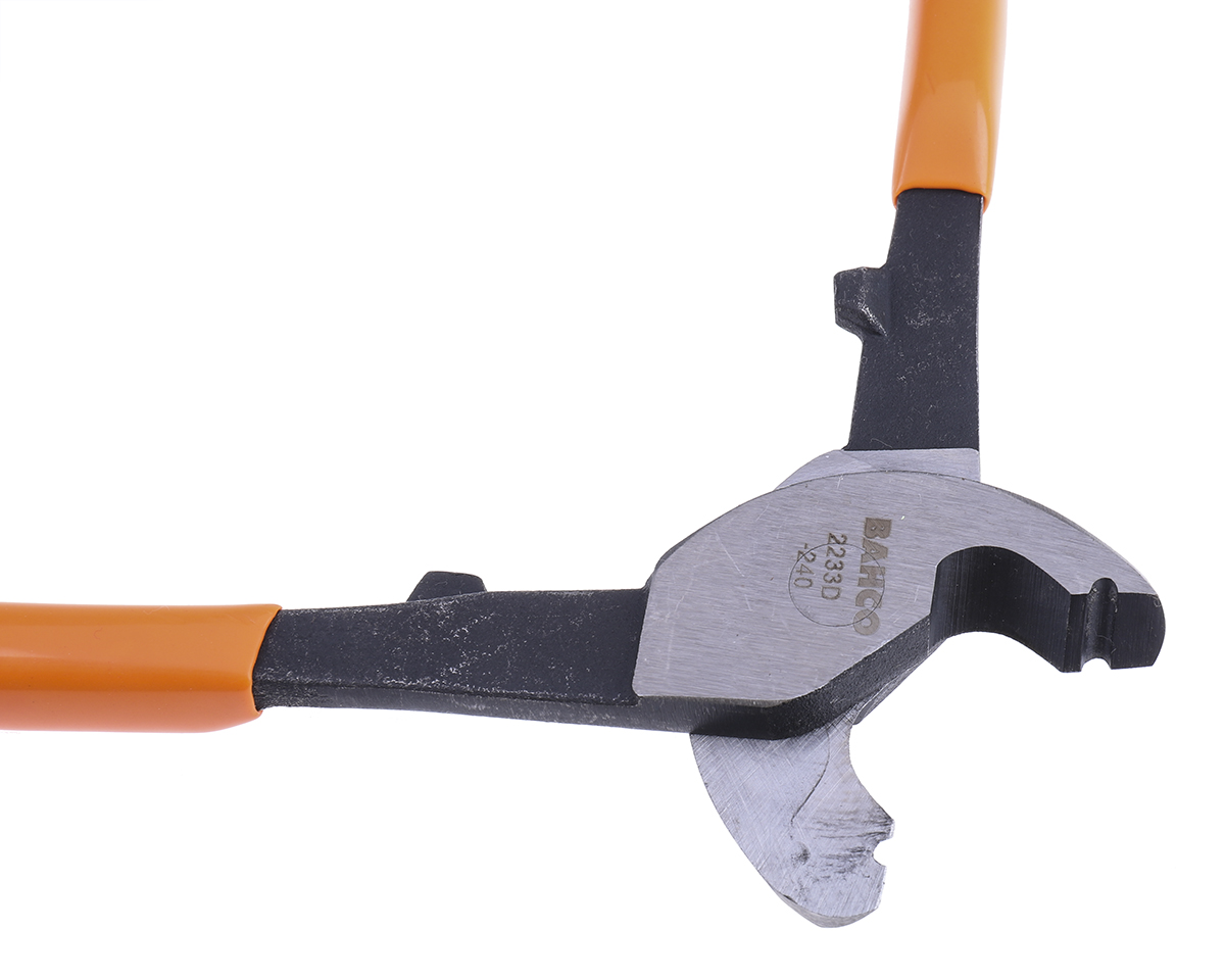 This is 2233D Cable Cutters manufactured by Bahco. The manufacturer part number is 2233D -240. It jaw is about 16mm in length . VDE/1000V Approval Options - no. Moreover, it has a maximum 14mm cutting capacity . It has an overall length of 240mm. Its comfortable handle is manufactured from durable polyvinyl chloride material. In addition, it has aluminium wire, copper wire cut material . It has a/an flush type cut . Applications Information involves electronic, electrical. plastic is the Grip Material of the product . ESD Safety - yes. cable cutter is a versatile product designed to provide user-defined applications.