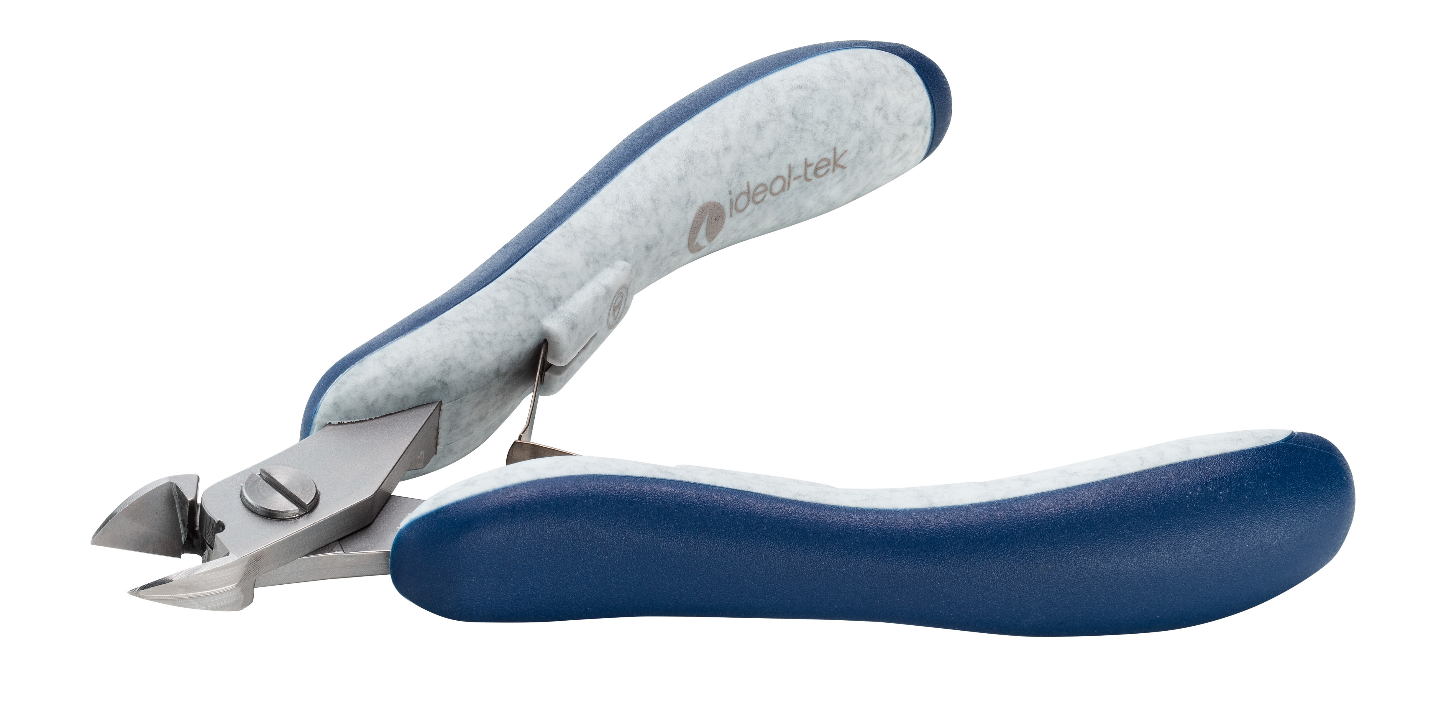 This is ESD Safe Cable Cutters manufactured by ideal-tek. The manufacturer part number is ES5142.CR.BG. VDE/1000V Approval Options - no. It has a non sparking nature no . Moreover, it has a cable cutters type cutter . It has a model number es5142.cr.bg. It is offered to cut soft wire materials . ESD Safety - yes.