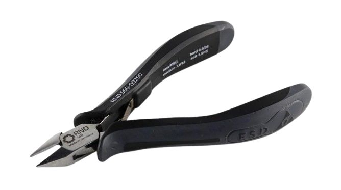 This is 550-00250 ESD Safe Side Cutters manufactured by RND. The manufacturer part number is RND 550-00250. Moreover, it has a side cutters type cutter . It is offered to cut hard wire, medium wire, soft wire materials . It has a model number rnd 550-00250. ESD Safety - yes.