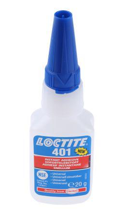 This is 401 Super Glue Bottle Liquid 20 g manufactured by Loctite. The manufacturer part number is 135428. It is assigned with a trade name of loctite 401. The product is in liquid form . It has a decent clear colour. Moreover, it has low viscosity viscosity description . The package is a sort of bottle. Its package size is approximately 20 g . It has a/an metal, plastic, rubber material compatibility .