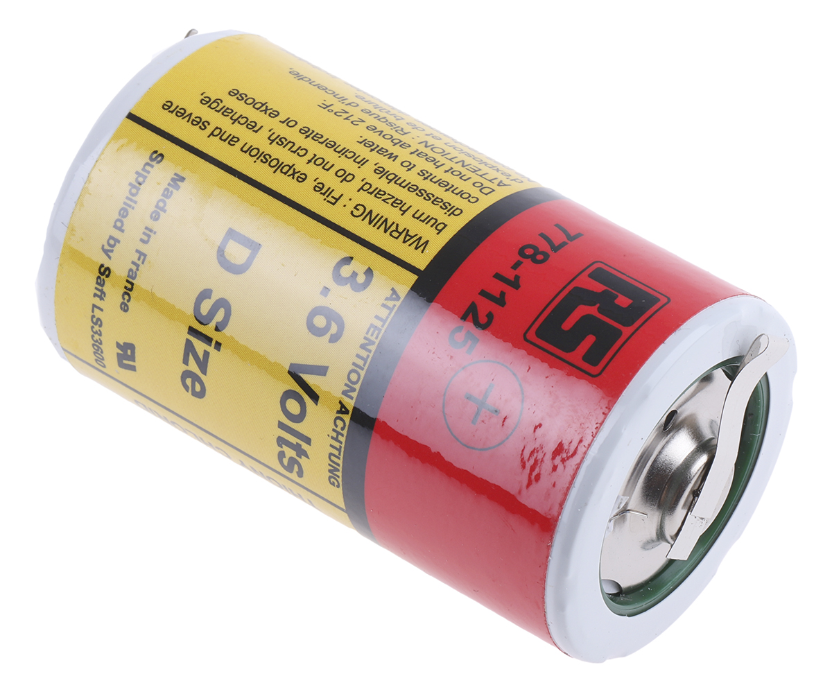 This is 3.6V Lithium Thionyl Chloride D Battery manufactured by RS PRO. The manufacturer part number is 778-1125. The module has the capacity of 17ah. The nominal voltage of the product is 3.6v. It has a/an lithium thionyl chloride chemistry . The terminal is a tags type. The product is available in d size.