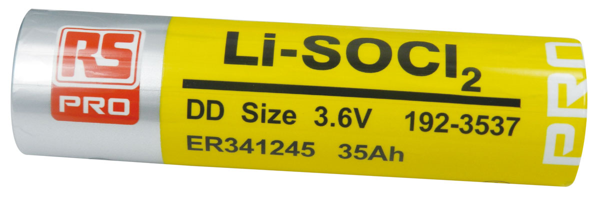This is 3.6V Lithium D Battery manufactured by RS PRO. The manufacturer part number is 192-3537. The module has the capacity of 35ah. It has a model number er341245. The product is available in dd size. The number of supplied batteries is/are 1 . It comes with a/an er341245 IEC name . The nominal voltage of the product is 3.6v. It has a/an lithium thionyl chloride chemistry . The terminal is a standard type. Its brand range is rs pro .