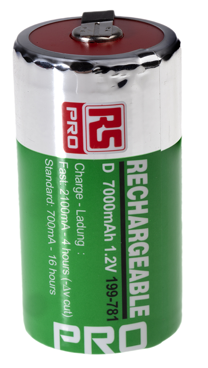 This is NiMH Rechargeable D Batteries 7000mAh manufactured by RS Pro. The manufacturer part number is 199-781. It has a low self discharge characteristic yes . The module has the capacity of 7ah. Whereas, the minimum operating temperature of the product is 0°c. The product has 0 → +70°c of operating temperature range. The product is available in d size. It comes with a/an hr20 IEC name . The nominal voltage of the product is 1.2v. It has a/an nimh chemistry . It has a maximum operating temperature of +70°c. The terminal is a tagged type. Its brand range is rs pro .