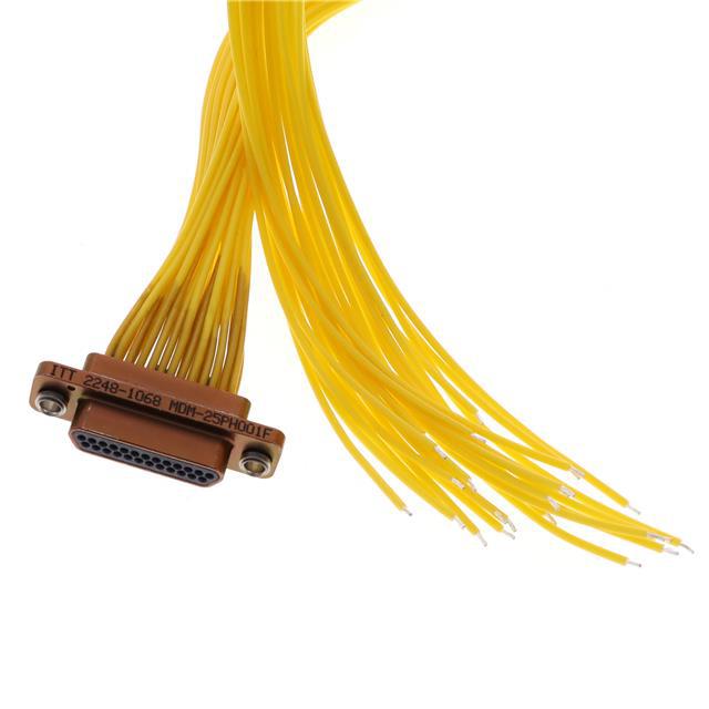 This is manufactured by ITT Cannon, LLC. The manufacturer part number is MDM-25PH001F. It is assigned with possible HTSUS value of 8544.42.9090. The product is rohs non-compliant. It first connector includes plug, male pins. The second connector is individual wire leads. It comes in d-type, micro-d configuration. The product carries possible position value of 25. Furthermore, the product is shielded with unshielded. The itt cannon, llc's product offers user-desired applications. Furthermore, the product is galvanized with excellent gold contact finishing. Its typical moisture sensitivity level is 1 (unlimited). Its accurate length is 1.50' (457.20mm). It has a long 28 weeks standard lead time. It has a classic yellow, individual colour. The product 83513-style micro d metal shell (mdm), is a highly preferred choice for users. In addition, bulk is the available packaging type of the product. Moreover, it corresponds to mdm-25, a base product number of the product. The product is designated with the ear99 code number.